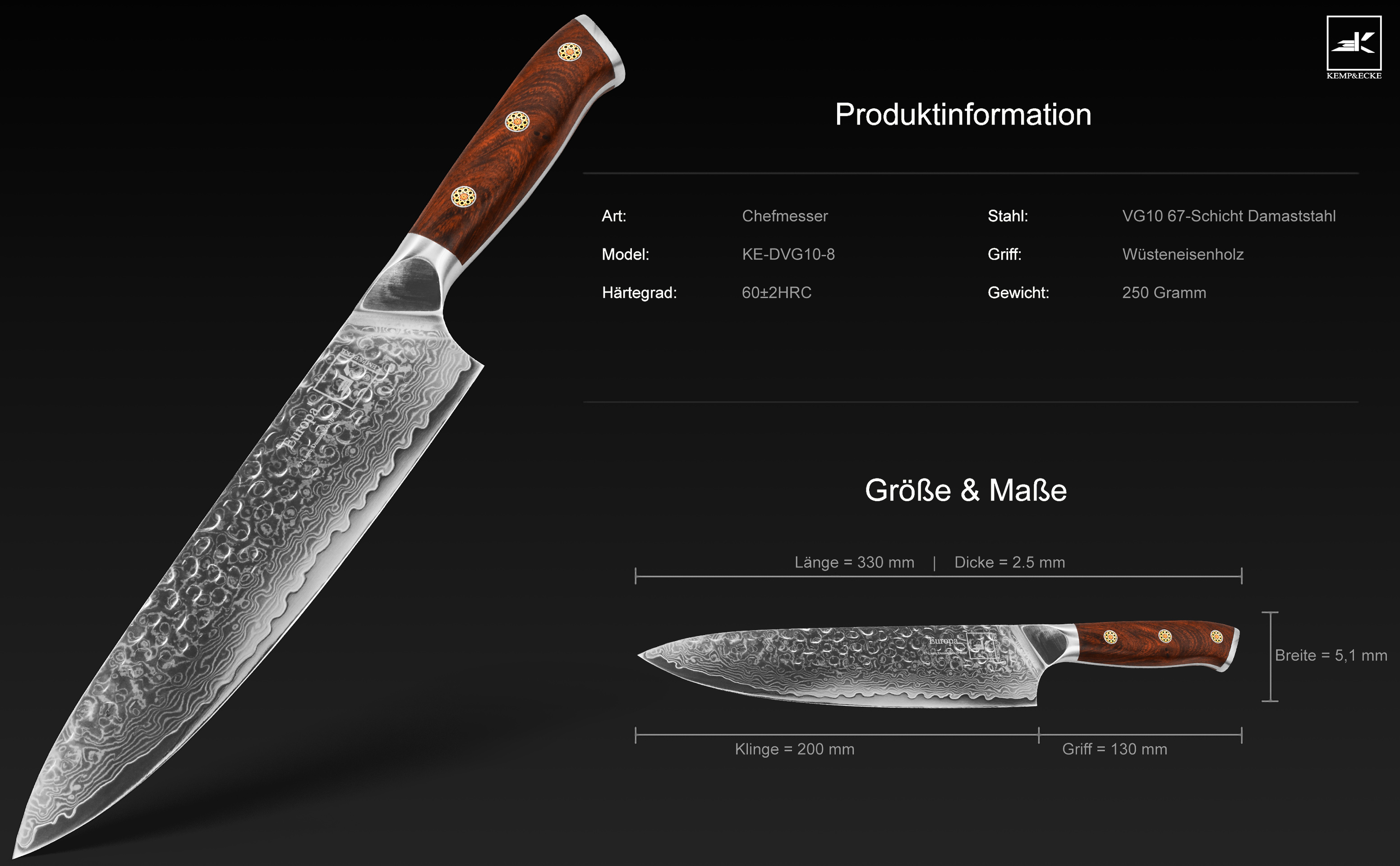 Produktinformationen "Damastmesser "Europa" Küchenmesser"