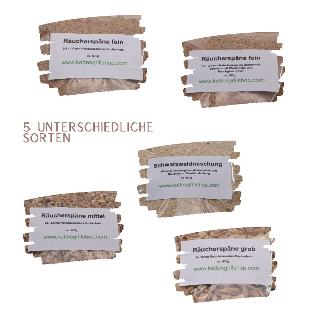 - SET - 5 Sorten Räucherspäne aus bester Qualität zur Verwendung zum Kalträuchern, Warmräuchern oder Heißräuchern.
